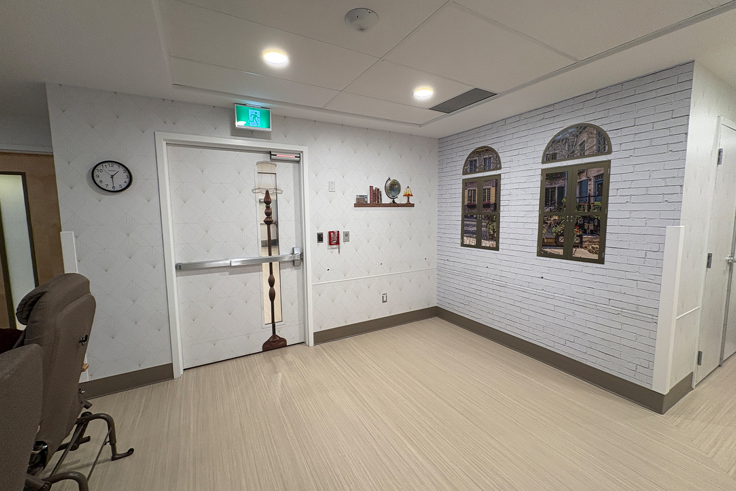CORPORATION DE SERVICES MALLET Conception de murales en trompe-l’œil destinées à l’aire prothétique de la résidence et ayant pour but de réduire l’errance en camouflant les différentes portes de sortie. 2025 Retour