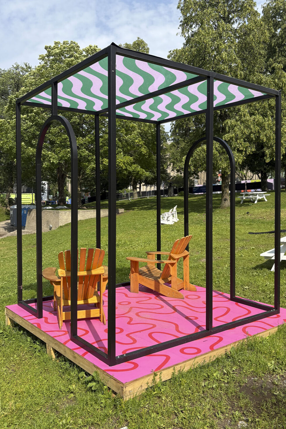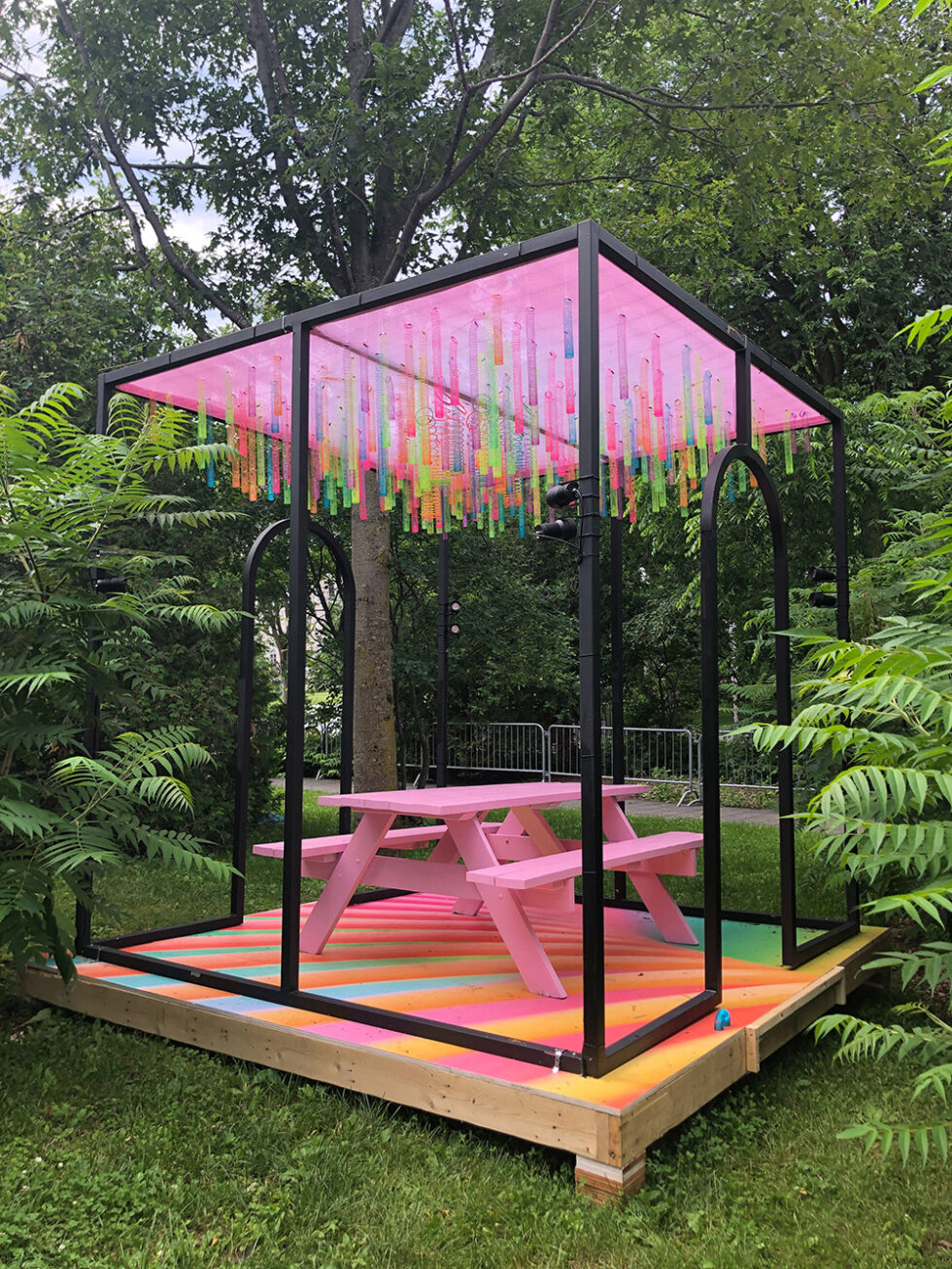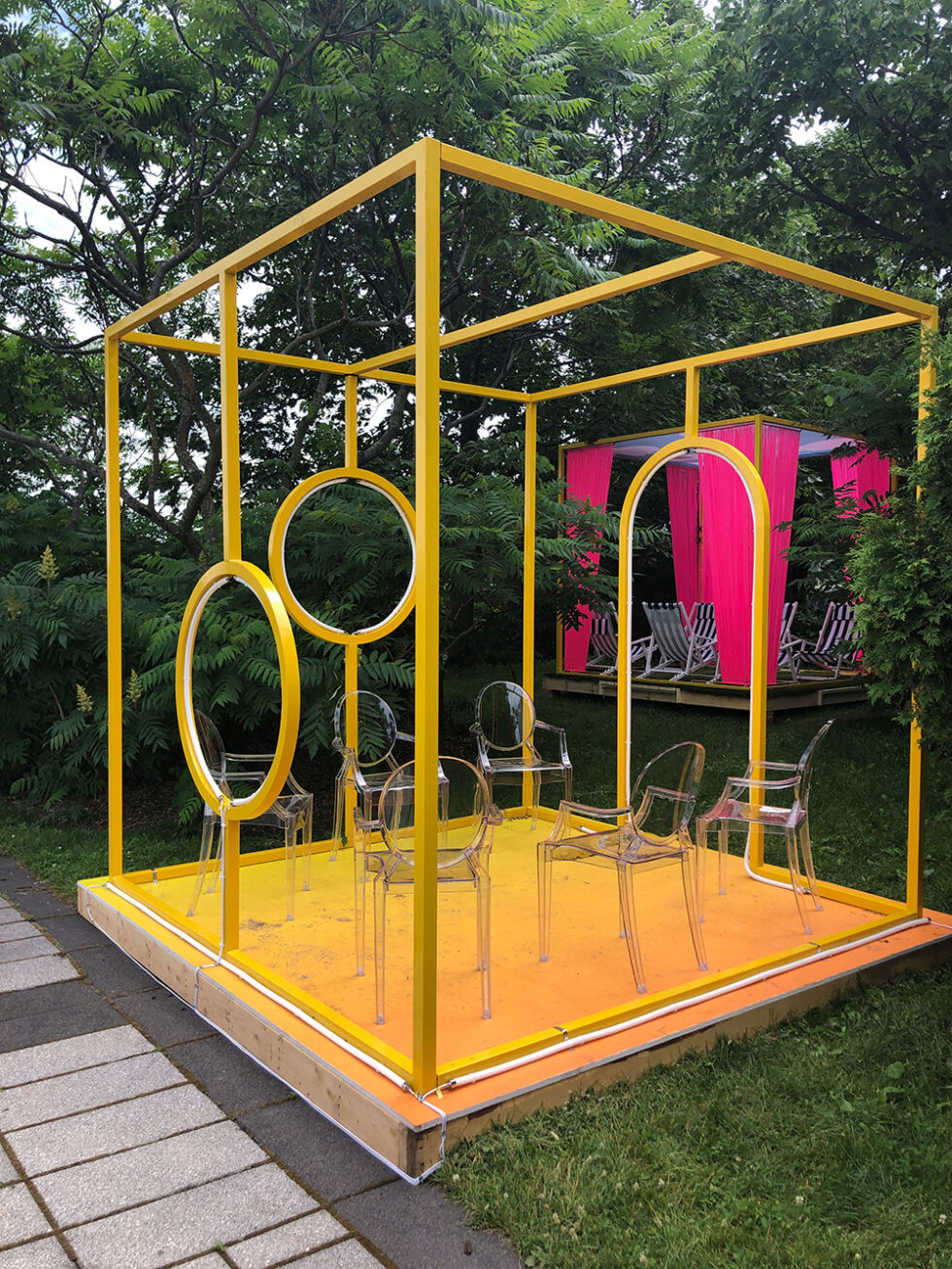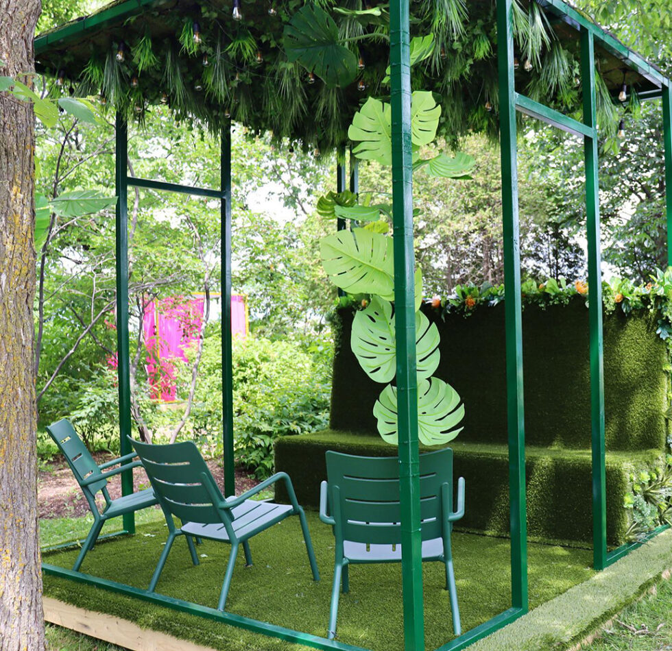 Installation d’un plafond de verdure, de jeux de tables, de palmiers et de feux de camp sur les sites de Place D’Youville, Assemblée nationale et Place George-V.