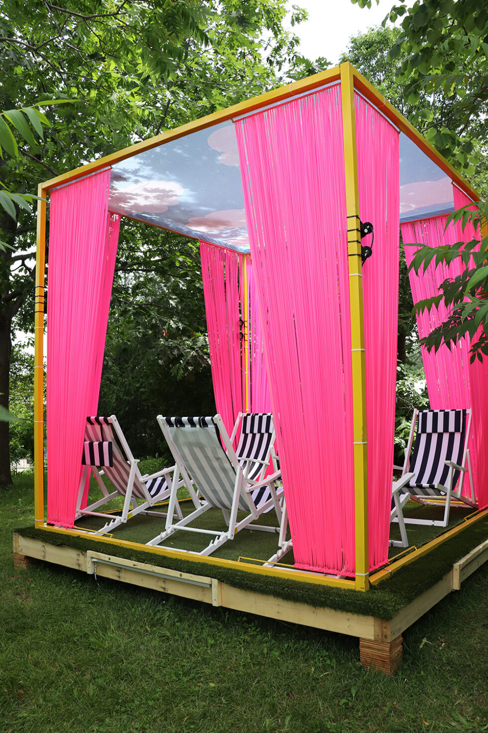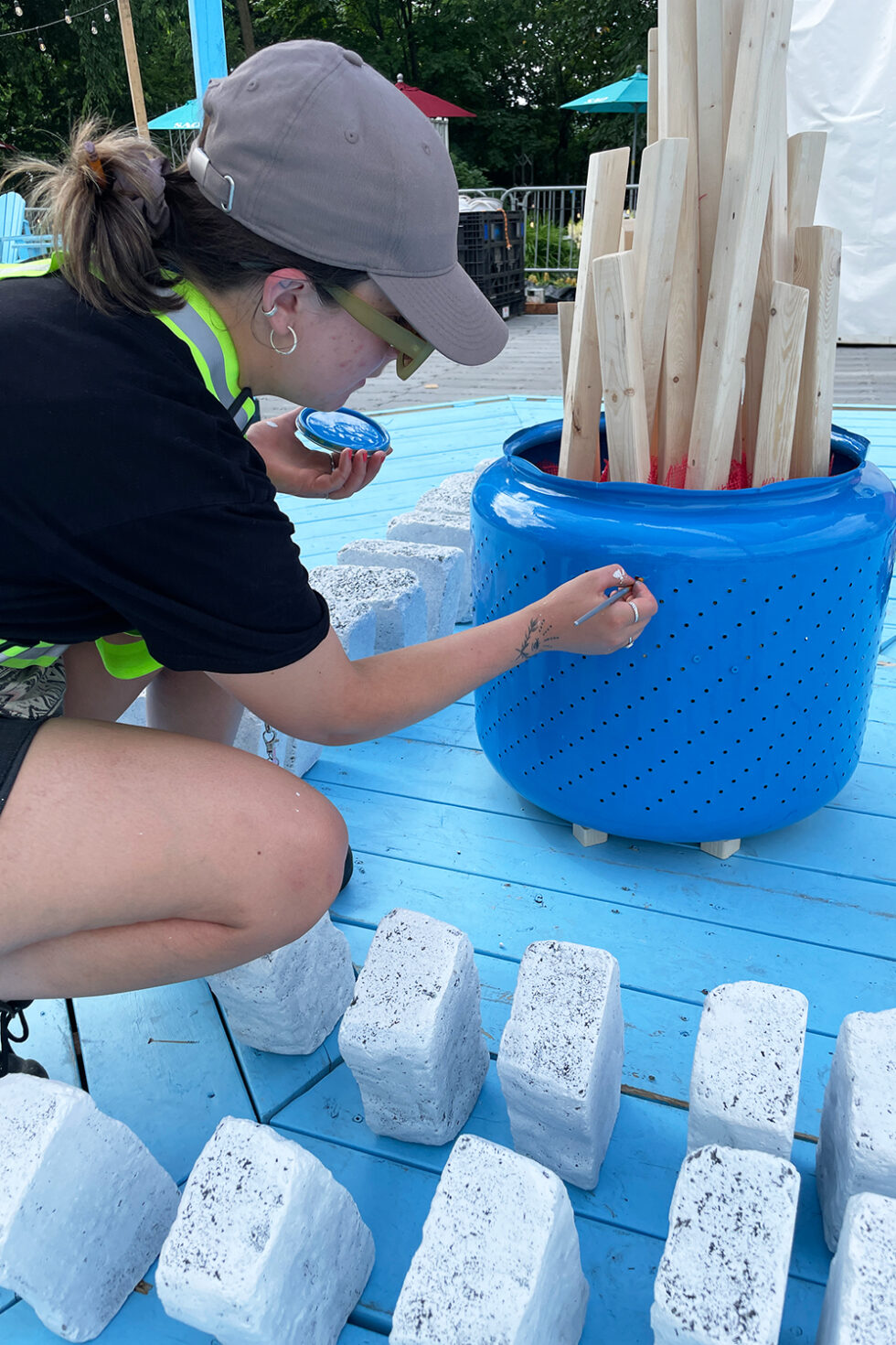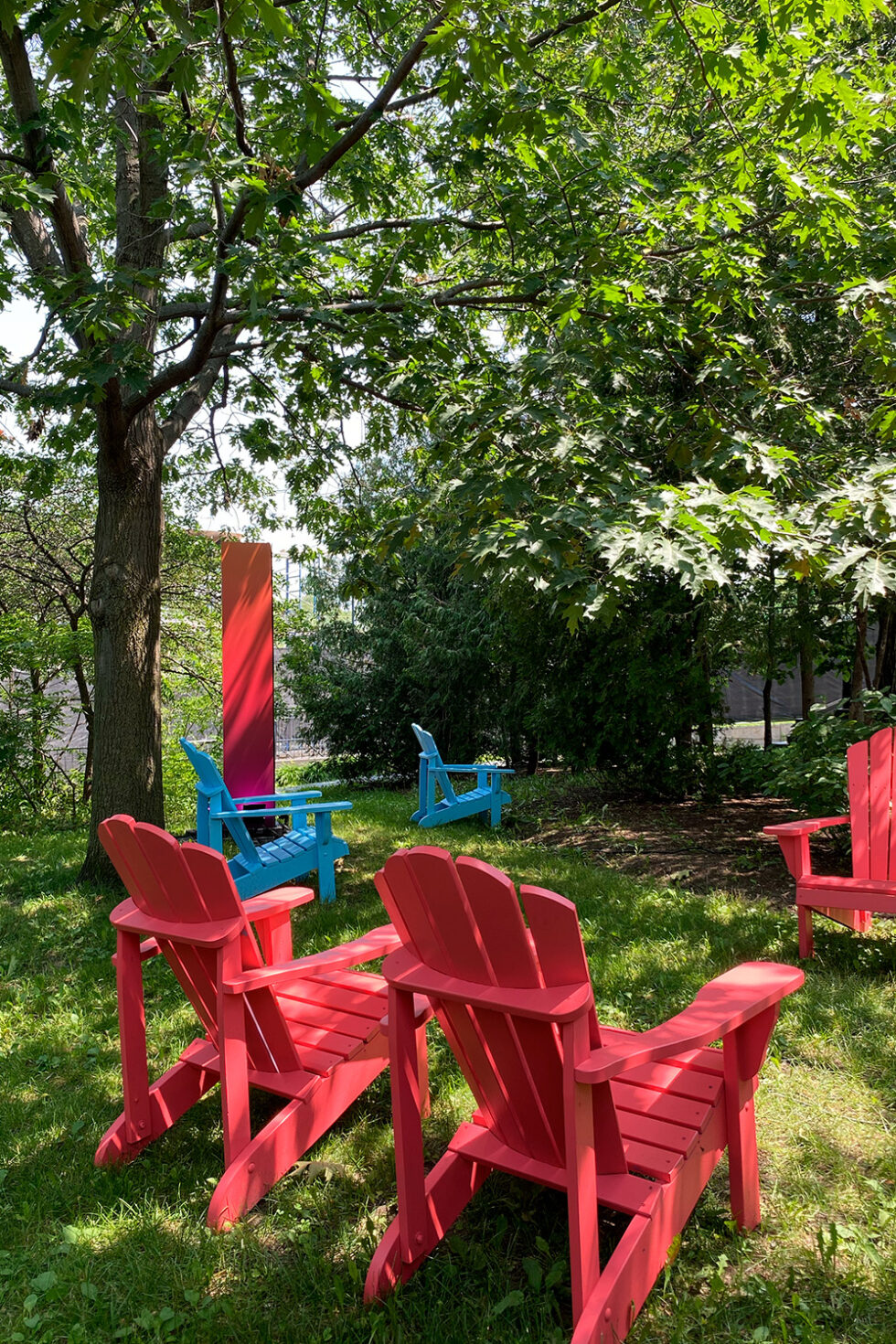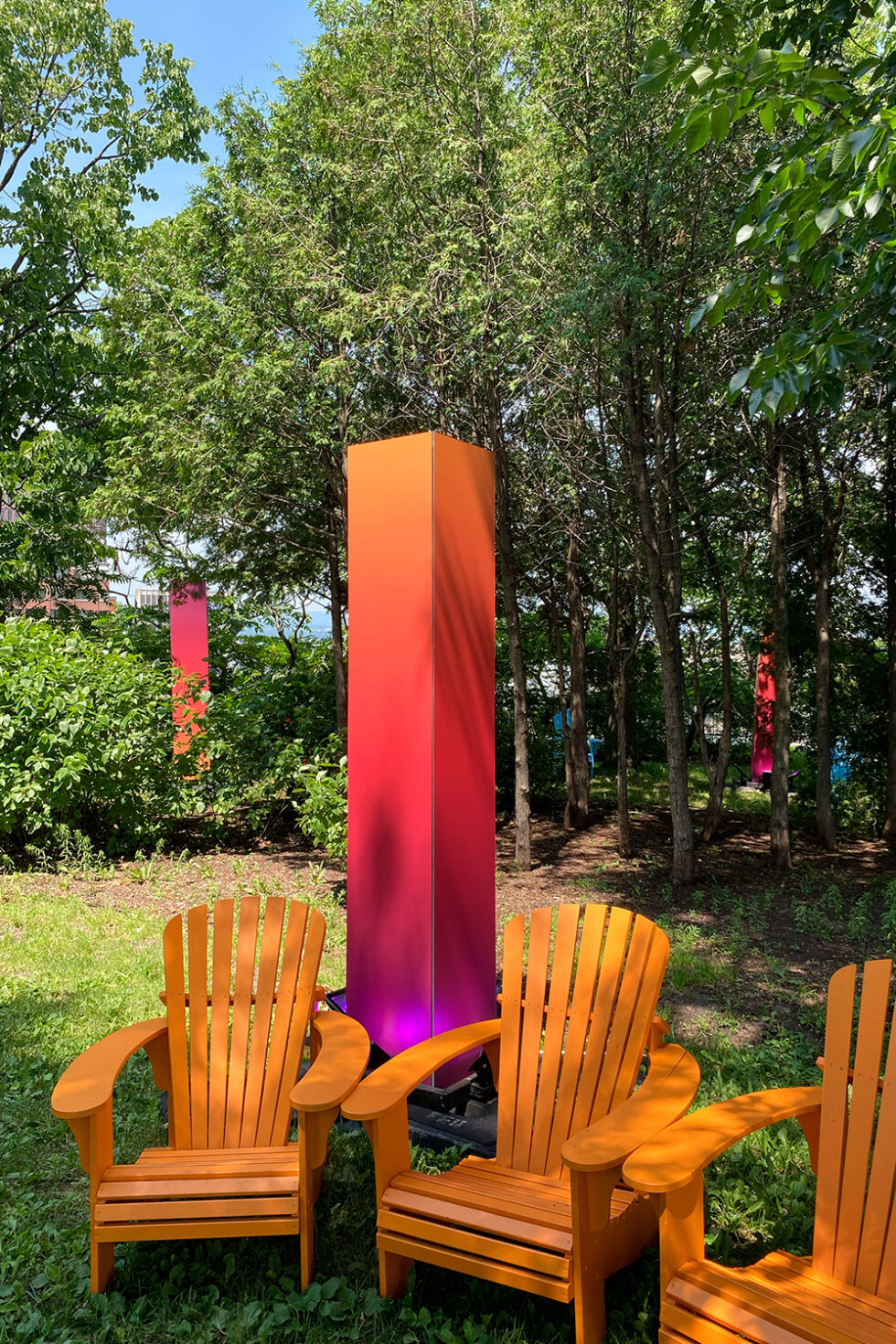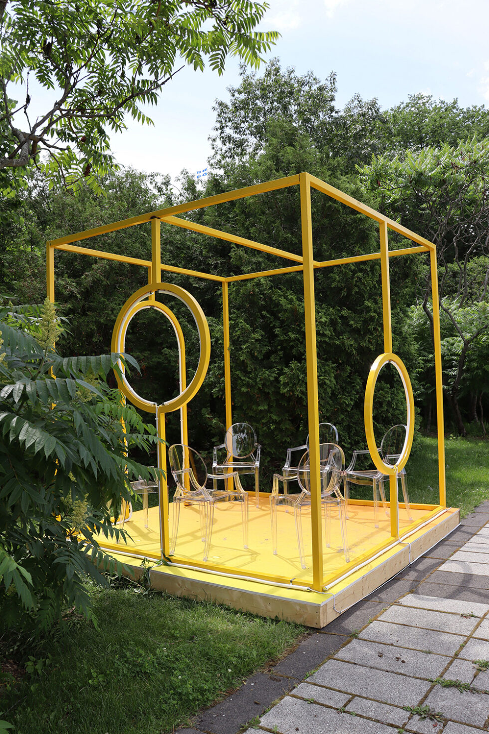 Installation d’un plafond de verdure, de jeux de tables, de palmiers et de feux de camp sur les sites de Place D’Youville, Assemblée nationale et Place George-V.