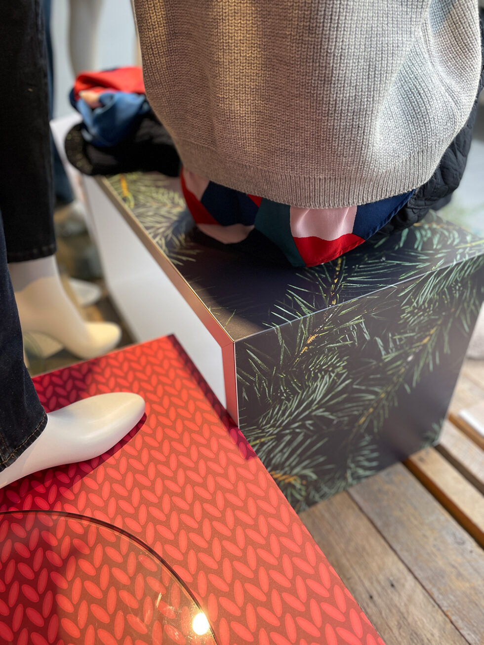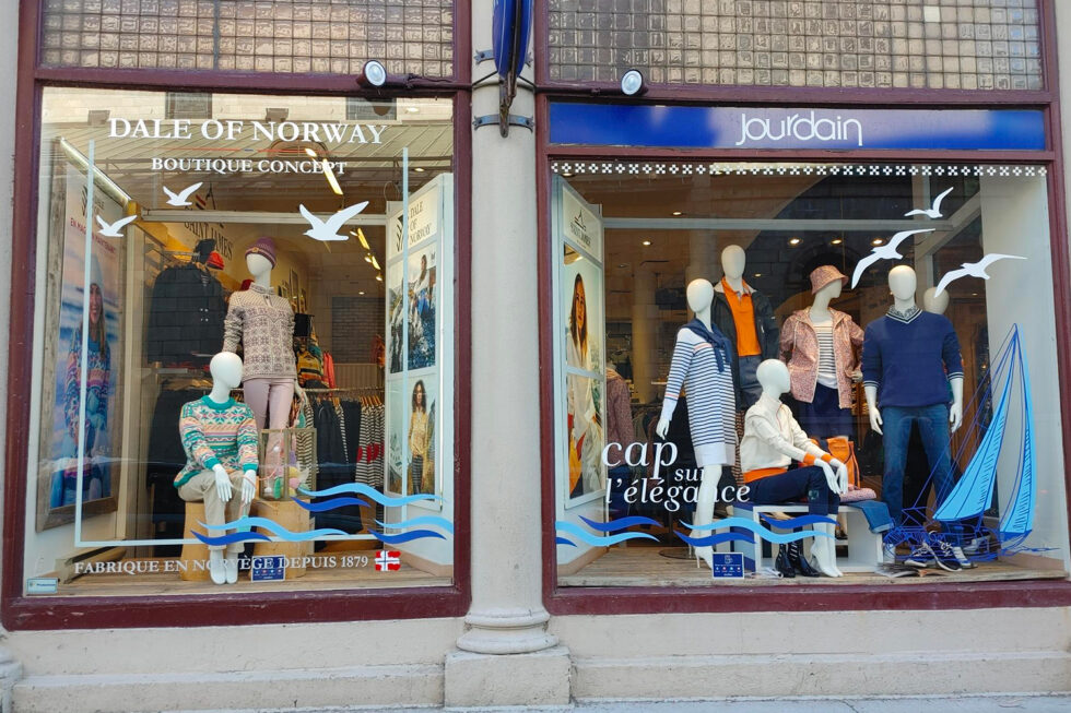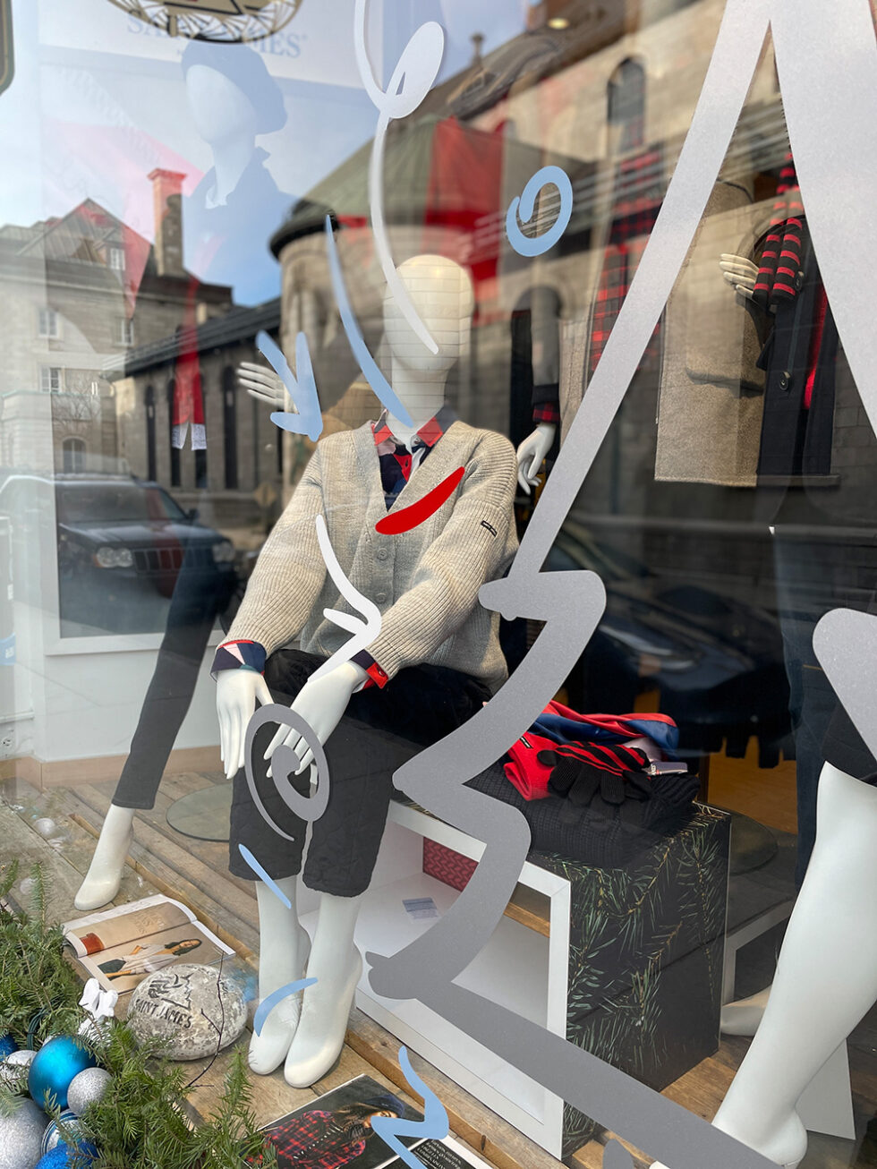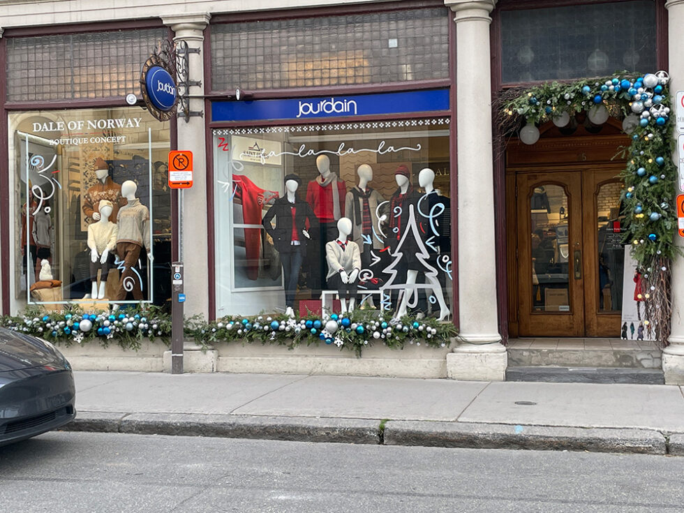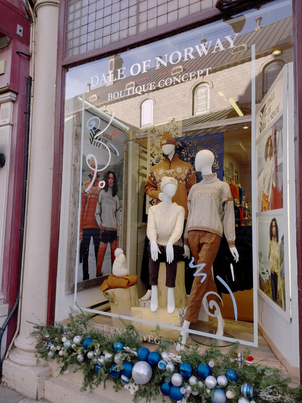 JOURDAIN Conception et installation de vinyle sur les vitrines saisonnières ainsi que les podiums. 2013-2024 Aménagement de la boutique Jourdain et de sa portion Dale of Norway. Première boutique Dale of Norway en Amérique de nord. 2013 Retour