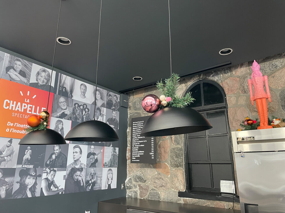 LA CHAPELLE SPECTACLES Réaménagement intérieur, conception d’ameublement, présentation visuelle, affichage et décors saisonniers. 2020-2022 Retour