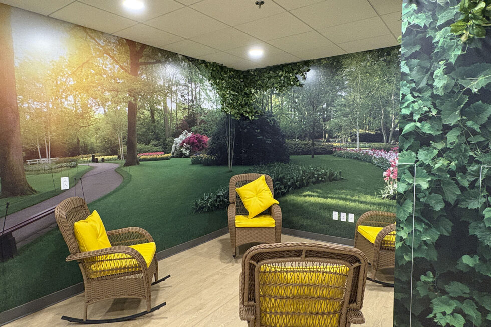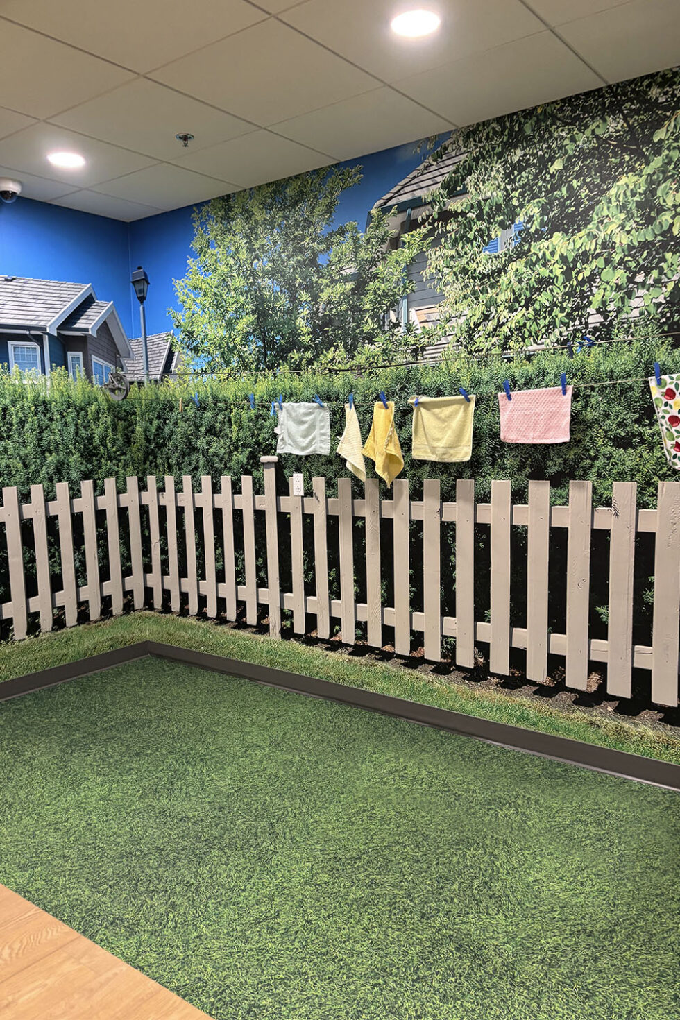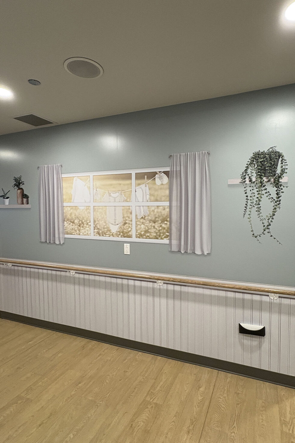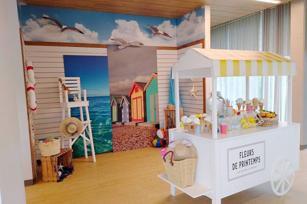 Aménagement des différentes salles thématiques destinées à une clientèle atteinte de troubles de la mémoire. Aménagement des espaces communs dont le hall d’entrée.