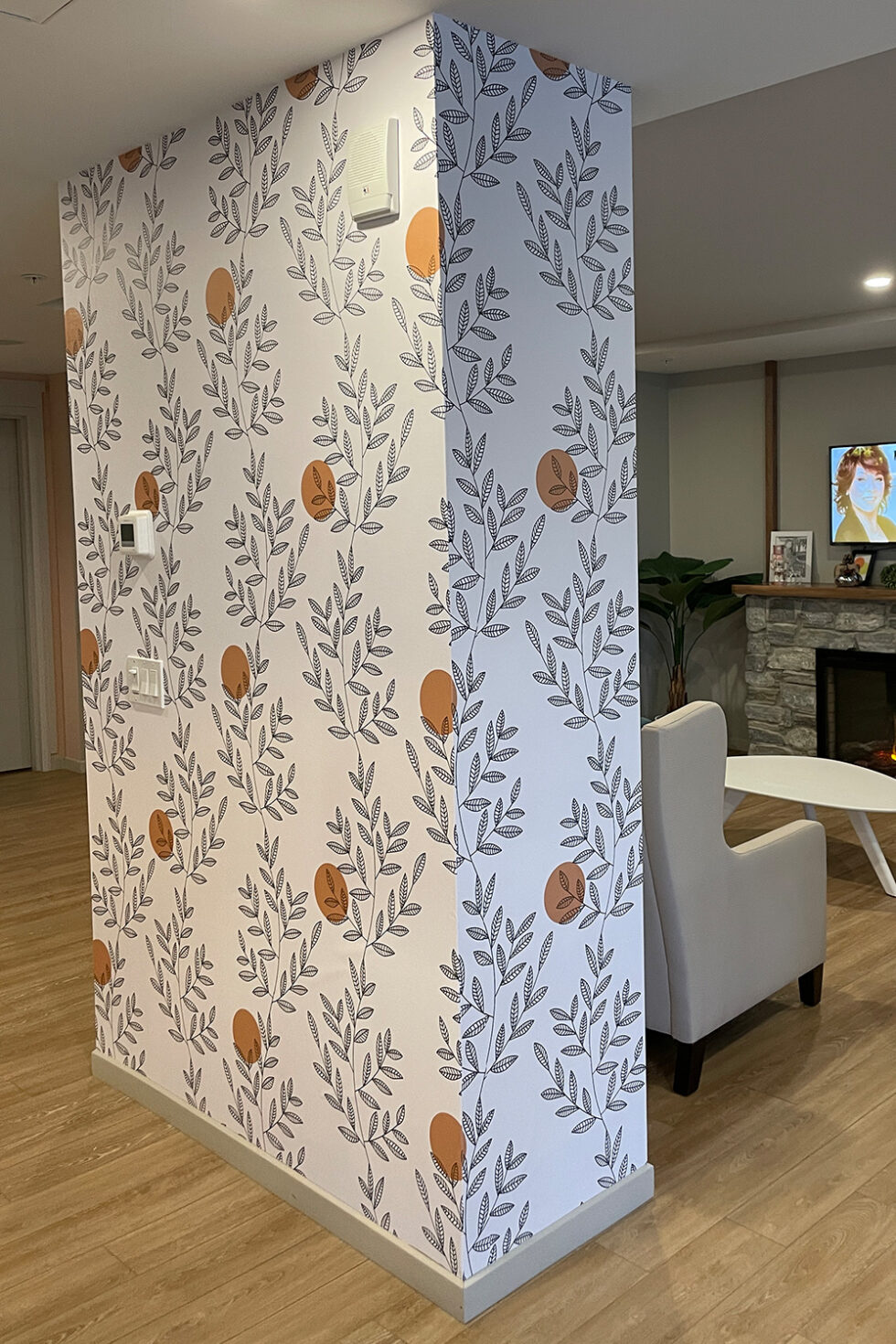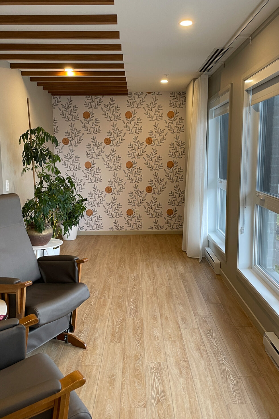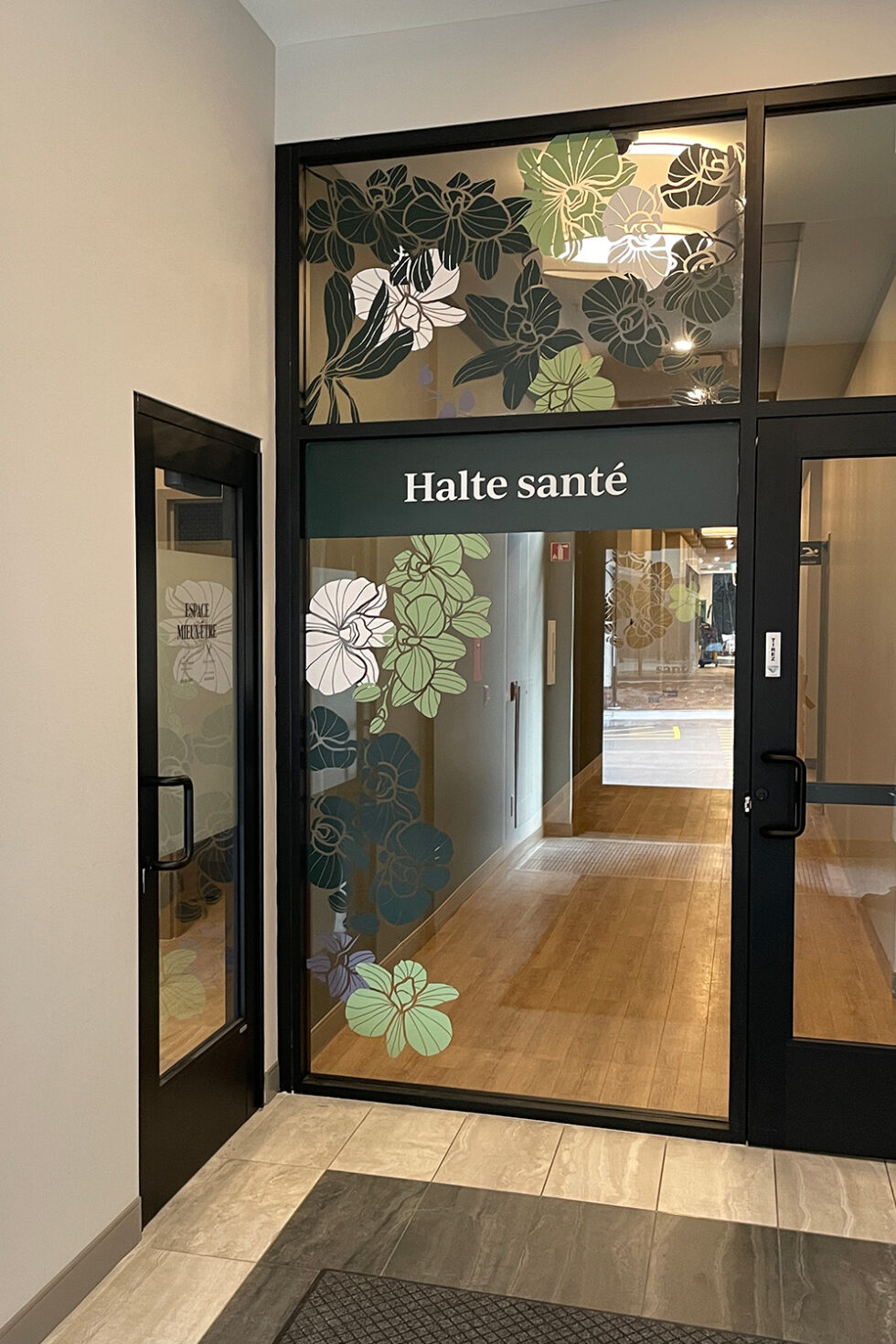 RÉSIDENCE LE MARC-AURÈLE Halte Santé Conception et installation de visuels pour habiller l’espace de la Halte santé. 2023 Impacts visuels divers Divers ajouts dont l’application de papier peint MERAKI, de visuels de portes et d’éléments de signalisation. 2022 Retour